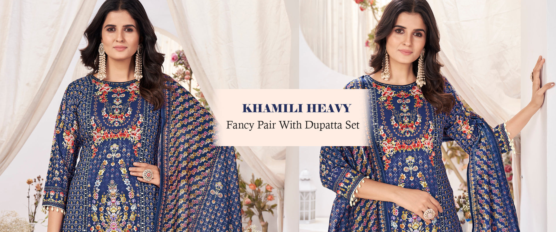 ••••••KHAMILI HEAVY FANCY PAIR WITH DUPATTA SET••••••